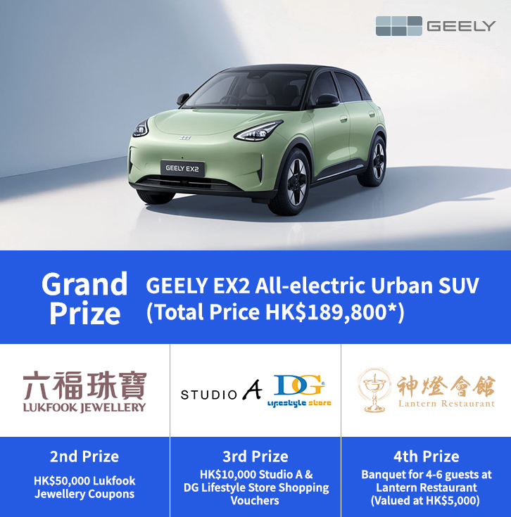 For our most enthusiastic and loyal shoppers, there are even bigger prizes to grab. During the promotion period, members with the highest accumulated spending on their Citi Credit Card can win the “Top Accumulated Spender Rewards” valued at over HK$320,000, including GEELY EX2 All-electric Urban SUV, Lukfook Jewellery Coupons, Studio A & DG Lifestyle Store Shopping Vouchers, Banquet at Lantern Restaurant and S Coupons!