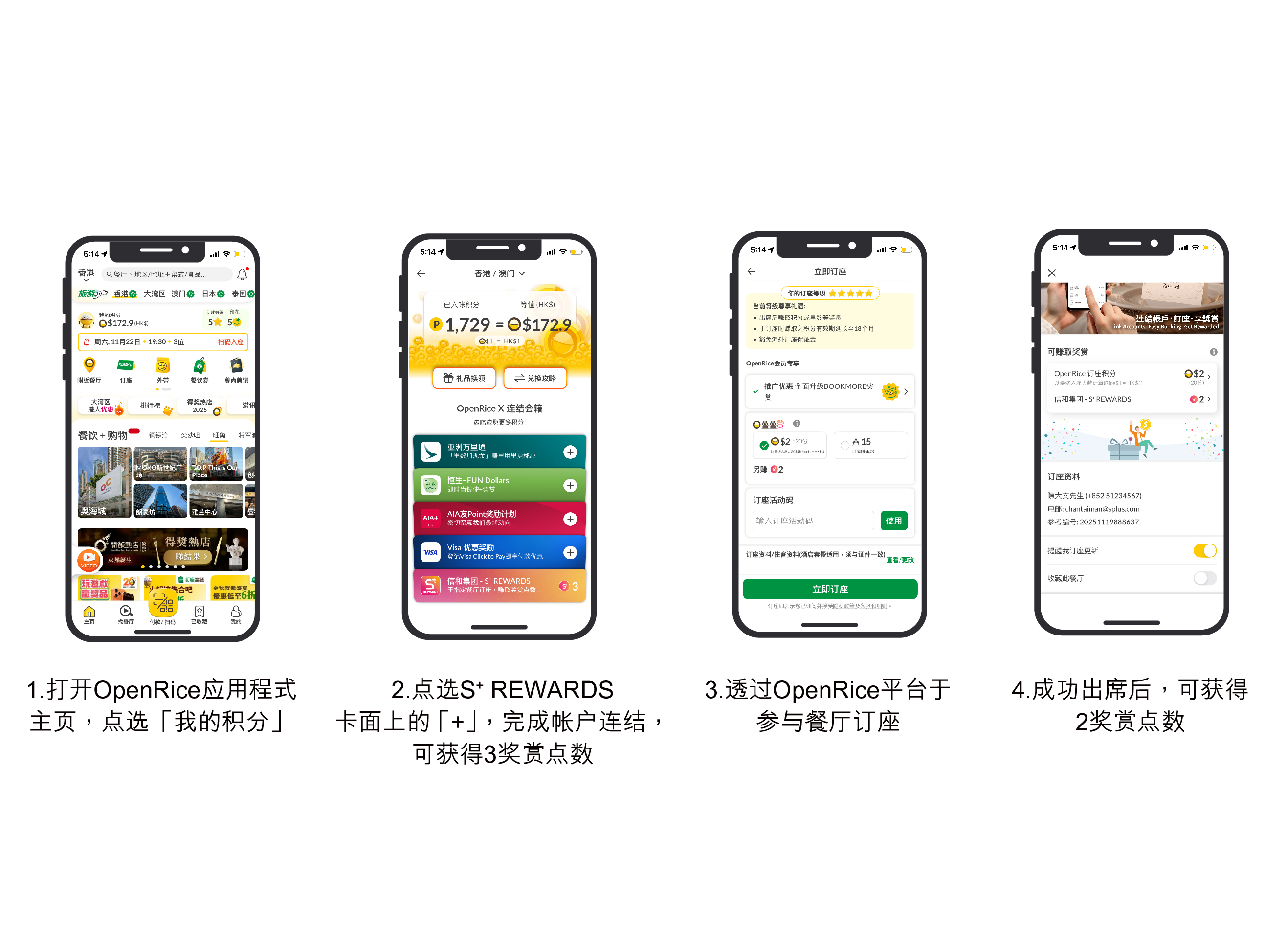 首次将你的S⁺ REWARDS帐户与OpenRice帐户成功连结,可获得3奖赏点数。简单、快捷、又有赏!
